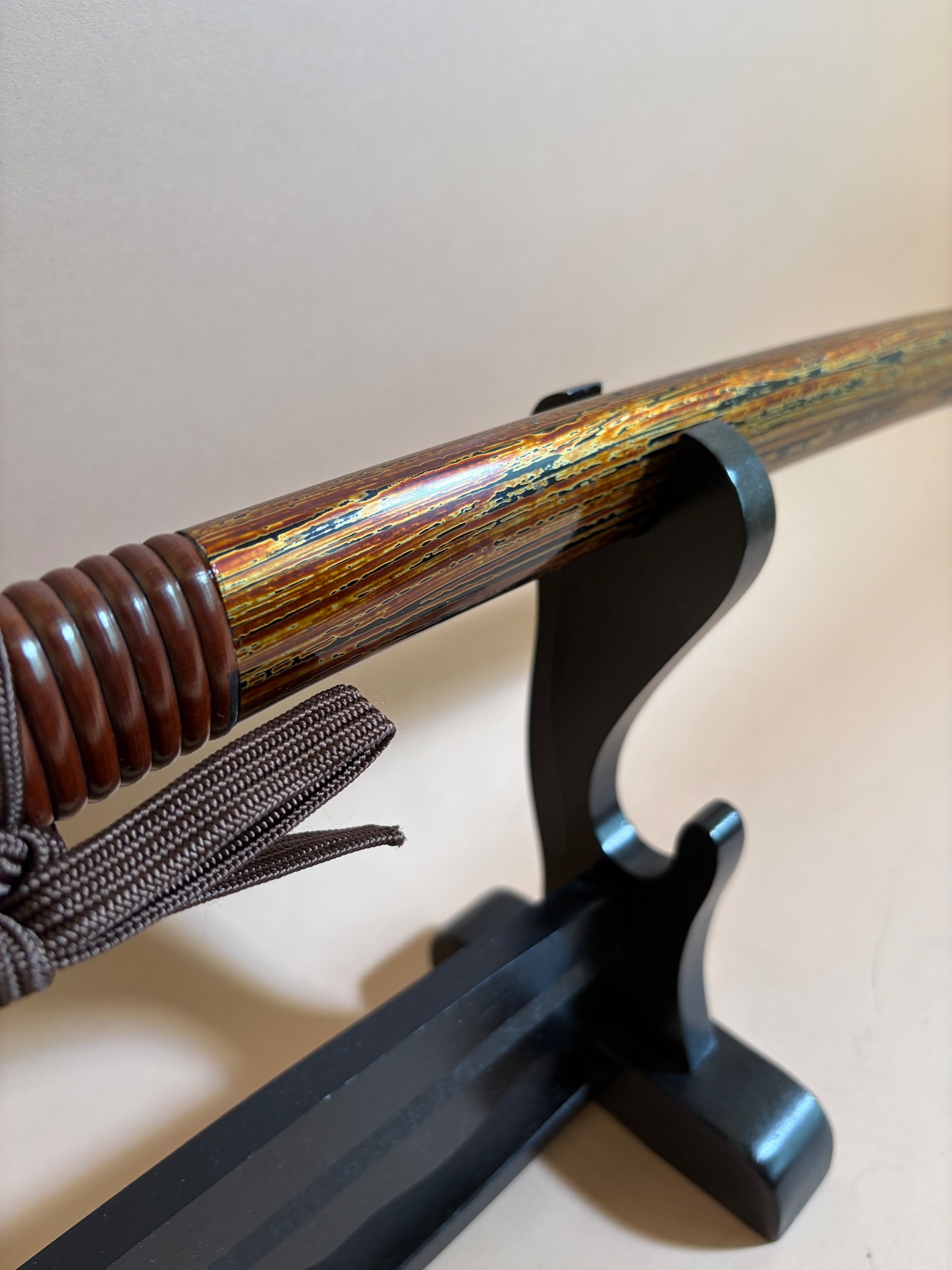 金研出刷毛目塗/茶染籐半千段巻鞘 茶色糸柄巻(小刀) #611